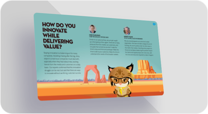 HOW DO YOU INNOVATE MIKE DUENSING HENRY EVANS WHILE CHIEF TECHNOLOGY OFFICER, SKUID VP OF CHANNEL SALES, PHONEBURNER Similar to our personal lives, we can get caught We are a bootstrapped and customer-funded DELIVERING up in the tyranny of the urgent. There are so many organization. We have not taken a large amount of pressures from the market, our customers, and funding. We aren’t publicly held. So client value is VALUE? our goals that sometimes we don’t make the the metric that matters. Deciding what projects to time to stop and think and prototype. Make the focus on is all about balancing the positive impact time to talk to your customers. Make the time to for clients and opportunity to win new ones, with Staying innovative is a balancing act for many understand the needs of the broader markets. the time and resources required to make it happen. companies. Avoiding chasing after the big, shiny object is a real issue companies must deal with, especially when they hear about new, exciting trends from the media and customers on a daily basis. Our experts confirmed that the innovation struggle can be real, but said that there are ways to innovate without sacrificing customer success. 15