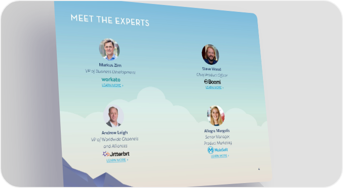 MEET THE EXPERTS Markus Zirn Steve Wood VP of Business Development Chief Product Officer LEARN MORE > LEARN MORE > Andrew Leigh Allegra Margolis VP of Worldwide Channels Senior Manager, and Alliances Product Marketing LEARN MORE > LEARN MORE > 4