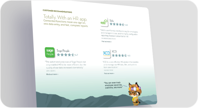 CUSTOMER RECOMMENDATIONS Totally. With an HR app. Skilo Connected functions mean one sign-on, 4.8 one data entry, and fast, complete reports. “ Skilo’s user-friendly interface is easy for employees and managers to use, and the highly configurable reporting module is essential for HR.” KASANDRA RADZINSKA Find out more > Sage People XCD 4.7 4.5 “ The automated processes of Sage People not “ XCD is a cost-effective HR solution that enables only enabled HR to be more efficient, but the us to manage our HR data, files, and policies quality of our data increased dramatically.” from one location.” JESS DAVIES INSPIRE SPORT Find out more > Find out more > “Y ou can even track employee vacancies, overtime, lots more.”