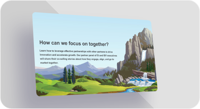 How can we focus on together? Learn how to leverage effective partnerships with other partners to drive innovation and accelerate growth. Our partner panel of SI and ISV executives will share their co-selling stories about how they engage, align, and go to market together.