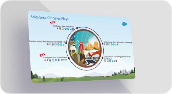 Salesforce CIB Sales Plays Intelligent Deal Execution Collaborative Client Engagement HUB - IB Institutional Client & Product Onboarding Intelligent Post Trade Client Collaborative Client Engagement HUB - Service for Markets