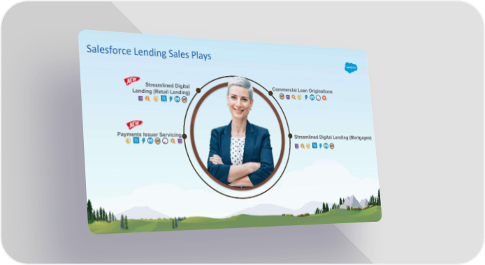Salesforce Lending Sales Plays Streamlined Digital Commercial Loan Originations Lending (Retail Lending) Payments Issuer Servicing Streamlined Digital Lending (Mortgages)