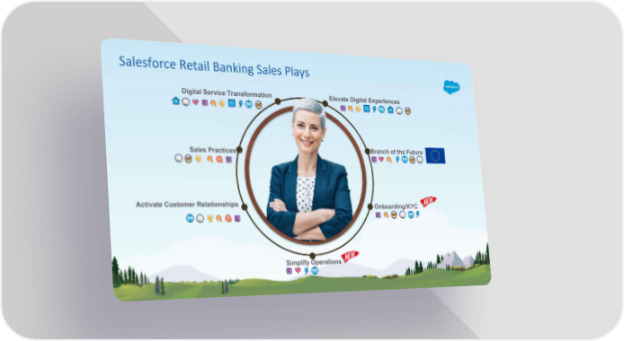 Salesforce Retail Banking Sales Plays Digital Service Transformation Elevate Digital Experiences Sales Practices Branch of the Future Activate Customer Relationships Onboarding/KYC Simplify Operations