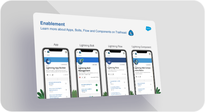 Enablement Learn more about Apps, Bolts, Flow and Components on Trailhead Lightning Component App Lightning Bolt Lightning Flow