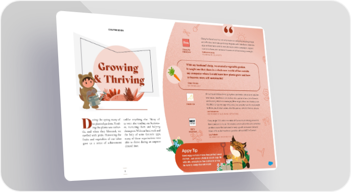 CHAPTER SEVEN Classy for Salesforce has not only made our online fundraising simple and effective, but it also perfectly integrates with Salesforce. With this app, we have been able to execute more online campaigns, expand our donor base, and increase the amount of fundraising coming in. Classy for Katherine Lucey Salesforce FOUNDER & CEO, SOLAR SISTER With my husband’s help, we created a vegetable garden. Growing It taught me that there is a whole new world of fun outside my computer where I could learn how plants grow and how to become more self-sustainable! & Thriving Charly Prinsloo SALESFORCE MVP The amount of time freed up by this automation allows us to allocate even more time toward innovation. In a period when a lot of brands are focusing efforts on managing their supply chain and making sure GoldFinch that they can get through this period, we actually have the bandwidth to think about what comes after this period, which I think is unique. Jen Haberman VICE PRESIDENT OF SALES, BEYOND BETTER FOODS uring the spring many of unlike anything else. Many of Every single 211 call in the state of Connecticut is being answered us planted gardens. Tend- us were also tending our business- from someone’s house. We created a new call center and converted Ding the plants was cathar- es, nurturing them and helping tic, and when they bloomed, we them grow. With our hard work and NICE another one in the last week to keep up with increased demand. swelled with pride. Harvesting the the help of some fantastic apps, inContact None of it would have been possible without NICE inContact. fruits and vegetables of our labor many of these organizations were Leo Pellerin CIO, UNITED WAY OF CONNECTICUT gave us a sense of achievement able to thrive during an unprece- dented time. Appy Tip Used egg cartons make the perfect seed starters. Just poke a hole in each cup, fill with dirt, and place the carton in a tray. Be sure to keep the soil moist. 9