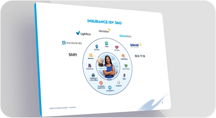 Insurance ISV 360 Sales Success Service Partners Marketing Industries Einstein AI Commerce Trailblazers Apps & Reskilling TRUTH Employee Analytics Experience Integration EMEA ISV Industry Booklet – Insurance 33
