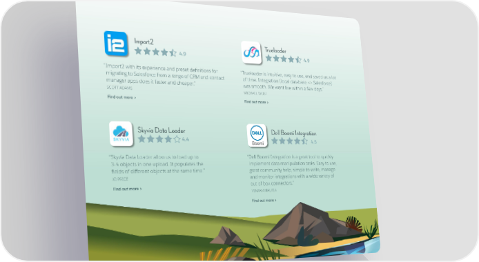 Import2 Trueloader 4.9 4.9 “ Import2 with its experience and preset definitions for “ Trueloader is intuitive, easy to use, and saved us a lot migrating to Salesforce from a range of CRM and contact of time. Integration (local database <> Salesforce) manager apps does it faster and cheaper.” was smooth. We went live within a few days.” SCOTT ADAMS MICHAEL WUST Find out more > Find out more > Skyvia Data Loader Dell Boomi Integration 4.4 4.5 “ Skyvia Data Loader allow us to load up to “ Dell Boomi Integration is a great tool to quickly 3-4 objects in one upload. It populates the implement data manipulation tasks. Easy to use, fields of different objects at the same time.” great community help, simple to write, manage JO PRICE and monitor integrations with a wide variety of Find out more > out of box connectors.” VINAR AMRUTIA Find out more > Editor's note: Reviews were edited for clarity and length.