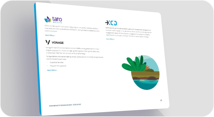Offline mobile app for field teams to log program and product delivery activities, XCD’s flexibility and mobile accessibility allows for the seamless management of input data, and look up Salesforce information - and sync back to Salesforce when a complex and disparate full or part time volunteer workforce, ensuring they feel back in reception. engaged and valued. XCD’s self-service, engagement and analytics tools allow organisations to inject genuine insight into their volunteer/people strategy. Learn More > Learn More > Vonage Contact Centre for Salesforce is the 100% native global business cloud telephony system for the world’s leading CRM platform. The highest rated voice solution (over 840 five-star reviews) on the AppExchange. Vonage delivers the market leading contact centre solution for the following inbound communications user cases: • Supporter Services • Program Management Learn More > International ISV Industry booklet - EMEA & ANZ 12