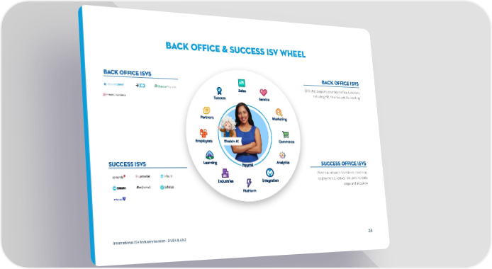 BACK OFFICE & SUCCESS ISV wheel BACK OFFICE ISVs BACK OFFICE ISVs ISVs that support your back office functions including HR, Finance and Accounting SUCCESS ISVs Success OFFICE ISVs ISVs that enhance Salesforce, speed up deployments, reduce risk, and increase usage and adoption International ISV Industry booklet - EMEA & ANZ 23