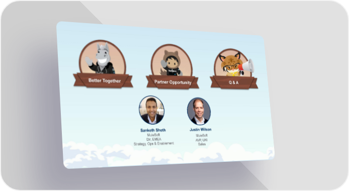Q & A Better Together Partner Opportunity Sanketh Sheth Justin Wilson MuleSoft MuleSoft Dir, EMEA AVP, UKI Strategy, Ops & Enablement Sales