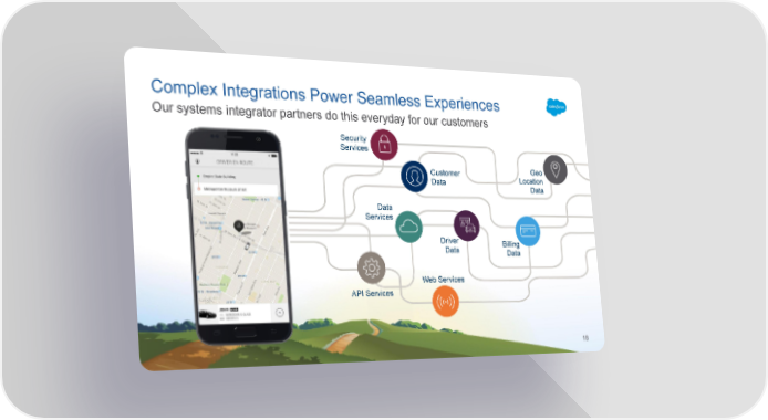 Complex Integrations Power Seamless Experiences Our systems integrator partners do this everyday for our customers Security Services Geo Customer Location Data Data Data Services Driver Billing Data Data Web Services API Services 18