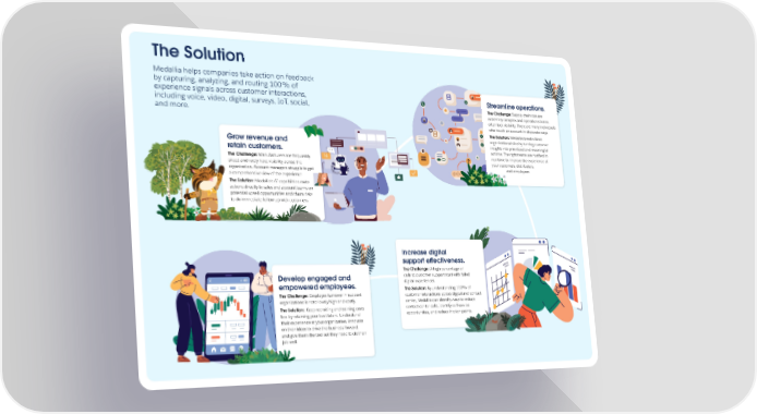 The Solution Medallia helps companies take action on feedback by capturing, analyzing, and routing 100% of experience signals across customer interactions, Streamline operations. including voice, video, digital, surveys, IoT, social, The Challenge: Supply chain ops are and more. extremely complex and operations teams often lack visibility. There are many individuals who touch an account in disparate ways. The Solution: Medallia breaks down Grow revenue and organizational silos by turning customer insights into prioritized and meaningful retain customers. actions. The right teams are notified in The Challenge: Manufacturers are frequently real time to improve the experience of siloed and rarely have visibility across the your customers, distributers, organization. Account managers struggle to get and employees. a comprehensive view of the experience. The Solution: Medallia’s AI capabilities route actions directly to sales and account teams on potential upsell opportunities and churn risks to do immediate follow-up with customers. Increase digital support effectiveness. The Challenge: A high percentage of calls to customer support start with failed Develop engaged and digital experiences. empowered employees. The Solution: By understanding 100% of The Challenge: Employee turnover in support customer interactions across digital and contact organizations is notoriously high and costly. center, Medallia can identify ways to reduce The Solution: Keep recruiting and training costs contact center calls, identify self-service low by retaining your best talent. Understand opportunities, and reduce friction points. their experience at your organization, innovate on their ideas to drive the business forward, and give them the tool set they need to do their job well.