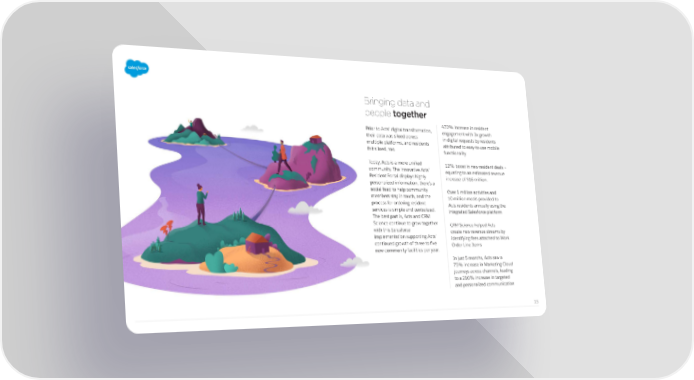 Prior to Acts’ digital transformation, their data was siloed across multiple platforms, and residents felt siloed, too. Today, Acts is a more unified community. The innovative Acts’ Resident Portal displays highly personalized information, there’s a social feed to help community members stay in touch, and the process for ordering resident services is simple and centralized. The best part is, Acts and CRM Science continue to grow together with this Salesforce implementation supporting Acts’ continued growth of three to five new community facilities per year. 470% increase in resident engagement with 3x growth in digital requests by residents attributed to easy-to-use mobile functionality 12% boost in new resident deals – equating to an estimated revenue increase of $16 million. Over 1 million activities and 10 million meals provided to Acts residents annually using the integrated Salesforce platform CRM Science helped Acts create new revenue streams by identifying fees attached to Work Order Line Items In just 5 months, Acts saw a 75% increase in Marketing Cloud journeys across channels, leading to a 210% increase in targeted and personalized communication Bringing data and people together 15