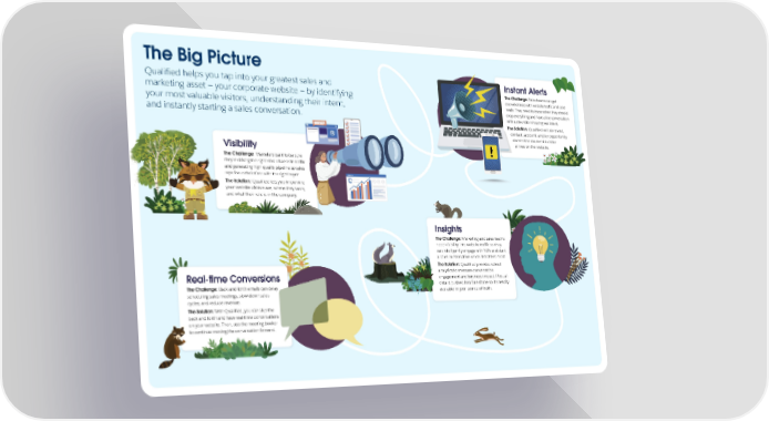 The Big Picture Qualified helps you tap into your greatest sales and Instant Alerts The Challenge: Sales teams can get marketing asset — your corporate website — by identifying overwhelmed with website traffic and cold your most valuable visitors, understanding their intent, leads. They need to know when they should drop everything and have a live conversation and instantly starting a sales conversation. with a site visitor showing real intent. The Solution: Qualified will alert lead, contact, account, and/or opportunity owners the moment a visitor arrives on the website. Visibility The Challenge: Marketers want to be sure they're driving the right kind of website traffic and generating high-quality pipeline so sales reps focus their time with the right buyer. The Solution: Qualified lets you know who your website visitors are, where they work, and what their role is in the company. Insights The Challenge: Marketing and sales teams need visibility into website traffic so they can intelligently engage with VIPs and start a sales conversation when it matters most. The Solution: Qualified provides robust analytics to measure conversation Real-time Conversions engagement and business impact. Plus, all The Challenge: Back-and-forth emails can delay data is pushed into Salesforce so it's readily scheduling sales meetings, slow down sales available in your source of truth. cycles, and reduce revenue. The Solution: With Qualified, you can skip the back and forth and have real-time conversations on your website. Then, use the meeting booker to continue moving the conversation forward.