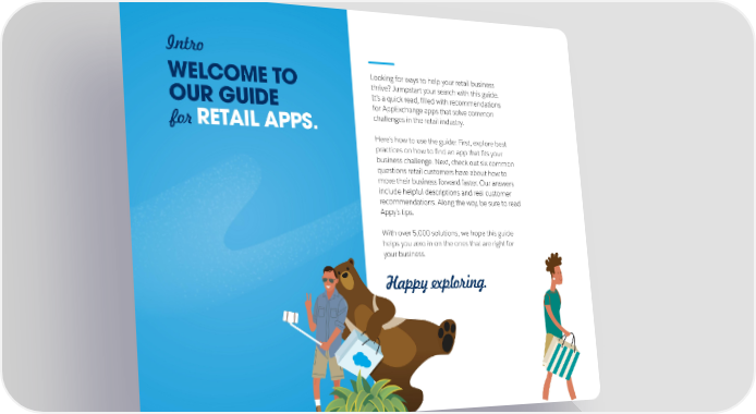 Intro WELCOME TO Looking for ways to help your retail business thrive? Jumpstart your search with this guide. OUR GUIDE It’s a quick read, filled with recommendations for AppExchange apps that solve common for RETAIL APPS. challenges in the retail industry. Here’s how to use the guide: First, explore best practices on how to find an app that fits your business challenge. Next, check out six common questions retail customers have about how to move their business forward faster. Our answers include helpful descriptions and real customer recommendations. Along the way, be sure to read Appy’s tips. With over 5,000 solutions, we hope this guide helps you zero in on the ones that are right for your business. Happy exploring.