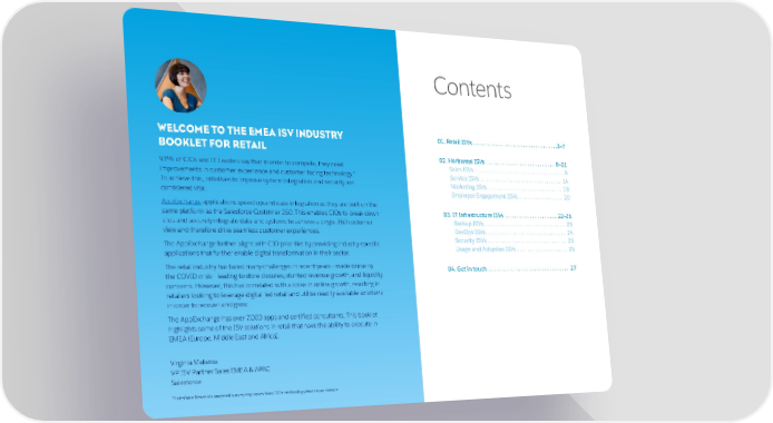 Contents WELCOME TO THE EMEA ISV INDUSTRY 01. Retail ISVs . . . . . . . . . . . . . . . . . . . . . . . . . . . . . . . . . .3–7 BOOKLET FOR RETAIL 02. Horizontal ISVs . . . . . . . . . . . . . . . . . . . . . . . . . . . 8–21 93% of CIOs and IT Leaders say that in order to compete, they need Sales ISVs . . . . . . . . . . . . . . . . . . . . . . . . . . . . . . . . . . . .9 improvements in customer experience and customer facing technology.* Service ISVs . . . . . . . . . . . . . . . . . . . . . . . . . . . . . . . . 14 To achieve this, initiatives to improve system integration and security are Marketing ISVs . . . . . . . . . . . . . . . . . . . . . . . . . . . . . 18 considered vital. Employee Engagement ISVs . . . . . . . . . . . . . . . . . . 20 AppExchange applications speed up and ease integration as they are built on the same platform as the Salesforce Customer 360. This enables CIOs to break down 03. IT Infrastructure ISVs . . . . . . . . . . . . . . . . . . . . . 22–26 silos and securely integrate data and systems to achieve a single 360 customer Backup ISVs . . . . . . . . . . . . . . . . . . . . . . . . . . . . . . . . 23 view and therefore drive seamless customer experiences. DevOps ISVs . . . . . . . . . . . . . . . . . . . . . . . . . . . . . . . . 24 The AppExchange further aligns with CIO priorities by providing industry-specific Security ISVs . . . . . . . . . . . . . . . . . . . . . . . . . . . . . . . 25 applications that further enable digital transformation in their sector. Usage and Adoption ISVs . . . . . . . . . . . . . . . . . . . . 26 The retail industry has faced many challenges in recent years - made worse by 04. Get in touch . . . . . . . . . . . . . . . . . . . . . . . . . . . . . . . . 27 the COVID crisis - leading to store closures, stunted revenue growth, and liquidity concerns. However, this has correlated with a spike in online growth, resulting in retailers looking to leverage digital-led retail and utilise readily-available solutions in order to recover and grow. The AppExchange has over 7,000 apps and certified consultants. This booklet highlights some of the ISV solutions in retail that have the ability to execute in EMEA (Europe, Middle East and Africa). Virginia Matassa VP ISV Partner Sales EMEA & APAC Salesforce *Salesforce Research analysed survey responses from 100+ technology leaders worldwide