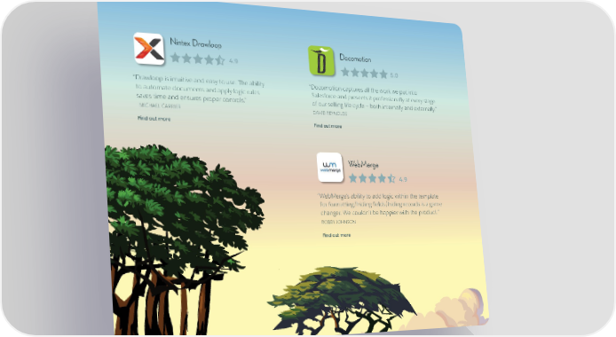 Nintex Drawloop Docomotion 4.9 5.0 “ Drawloop is intuitive and easy to use. The ability “ Docomotion captures all the work we put into to automate documents and apply logic rules Salesforce and presents it professionally at every stage saves time and ensures proper controls.” of our selling life cycle — both internally and externally.” MICHAEL CARRIER DAVID REYNOLDS Find out more Find out more WebMerge 4.9 “ WebMerge’s ability to add logic within the template for formatting/hiding fields/hiding records is a game changer. We couldn’t be happier with the product.” ROBBY JOHNSON Find out more