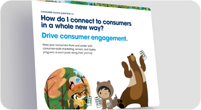CONSUMER GOODS QUESTION #1 How do I connect to consumers in a whole new way? Drive consumer engagement. Keep your consumers front and center with consumer-scale marketing, service, and loyalty programs at each point along their journey.