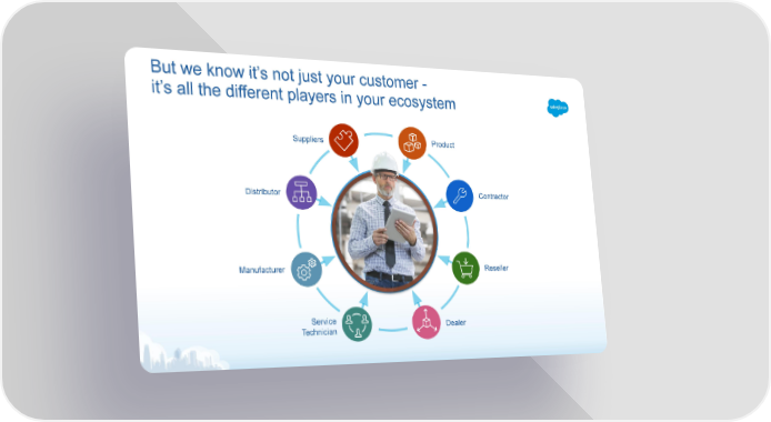 But we know it’s not just your customer - it’s all the different players in your ecosystem Suppliers Product Distributor Contractor Manufacturer Reseller Service Dealer Technician
