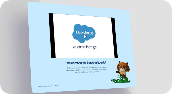 Salesforce ISV Industry Booklet - Banking Page 1 Page 3Video Player is loading.Play VideoPlaySkip BackwardSkip ForwardMuteCurrent Time 0:00/Duration 0:51Loaded: 4.54%0:00Stream Type LIVESeek to live, currently behind liveLIVERemaining Time -0:51 1xPlayback RateChaptersChaptersDescriptionsdescriptions off, selectedCaptionscaptions settings, opens captions settings dialogcaptions off, selectedAudio TrackPicture-in-PictureFullscreenThis is a modal window.Beginning of dialog window. Escape will cancel and close the window.TextColorWhiteBlackRedGreenBlueYellowMagentaCyanOpacityOpaqueSemi-TransparentText BackgroundColorBlackWhiteRedGreenBlueYellowMagentaCyanOpacityOpaqueSemi-TransparentTransparentCaption Area BackgroundColorBlackWhiteRedGreenBlueYellowMagentaCyanOpacityTransparentSemi-TransparentOpaqueFont Size50%75%100%125%150%175%200%300%400%Text Edge StyleNoneRaisedDepressedUniformDrop shadowFont FamilyProportional Sans-SerifMonospace Sans-SerifProportional SerifMonospace SerifCasualScriptSmall CapsResetDoneClose Modal DialogEnd of dialog window.