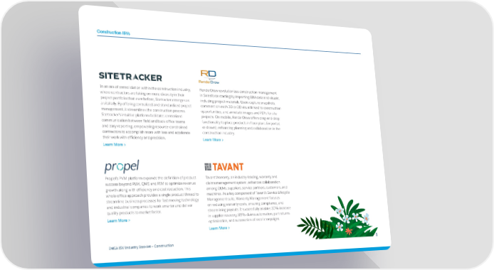 Construction ISVs In an era of consolidation within the construction industry, RenderDraw revolutionizes construction management where contractors are taking on more diversity in their in Salesforce starting by importing BIM data and visuals, project portfolio than ever before, Sitetracker emerges as including project materials. Users capture snapshots, a vital ally. By offering centralized and standardized project comment on each 3D or 2D visual linked to construction management, it streamlines the construction process. opportunities, and annotate images and PDFs for site Sitetracker’s intuitive platform facilitates centralized projects. On mobile, RenderDraw offers drag-and-drop communication between field and back-office teams functionality to place products in floor-plans (imported and easy reporting, empowering resource-constrained or drawn), enhancing planning and collaboration in the contractors to accomplish more with less and accelerate construction industry. their work with efficiency and precision. Learn More > Learn More > Propel’s PVM platform expands the definition of product Tavant Warranty, an industry-leading, warranty and success beyond PLM, QMS and PIM to optimize revenue claims management system, enhances collaboration growth along with efficiency and cost reduction. This among OEMs, suppliers, service partners, customers, and whole office approach provides a single product thread to machines. As a key component of Tavant’s Service Lifecycle streamline business processes for fast moving technology Management suite, Warranty Management focuses and industrial companies to work smarter and deliver on reducing warranty costs, ensuring compliance, and quality products to market faster. streamlining payouts. It successfully enables 50% increase Learn More > in supplier recovery, 85% claims automation, part returns optimization, and automation of recall campaigns. Learn More > EMEA ISV Industry Booklet — Construction 5
