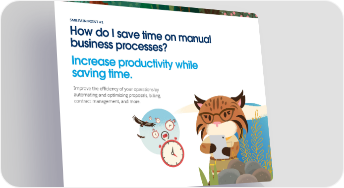 SMB PAIN POINT #1 How do I save time on manual business processes? Increase productivity while saving time. Improve the eiffciency of your operations by automating and optimizing proposals, billing, contract management, and more.