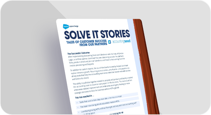 SOLVE IT STORIES SOLVE IT STORIES The Successful Outcome After implementing Accounting Seed and Salesforce with the help of Gimbal Logic, a certified partner, LionHeart has zero data living outside the platform. Every product detail and job is in Salesforce and flows to Accounting Seed for invoice processing and beyond. In addition to custom reports, the out-of-the-box functionality helped LionHeart realize immense growth. Recurring journal entries, amortization, and payables are all key tools that help the accounting team know what the month end will look like well before its closed. The ability to pull data together related to projects and product profitability enabled the accounting team to examine every aspect of the business. The team could see what areas needed improvement and what areas could grow, leading to more strategic decisions to help the business achieve 40% growth. This has resulted in ... • Tasks that used to take days now take a few hours at most • The team now being able to accurately measure KPIs • LionHeart growing 40% without having to add any additional accounting staff or building space Considerations for customers who are looking for an accounting solution. • Use a cloud-based solution with real on-platform accountings tools • If you are pulling together a report more than once a quarter, it’s time to create a custom report • Invest in the right accounting team to drive your company’s growth and revenue goals Learn more about Accounting Seed for Salesforce on AppExchange. Learn more