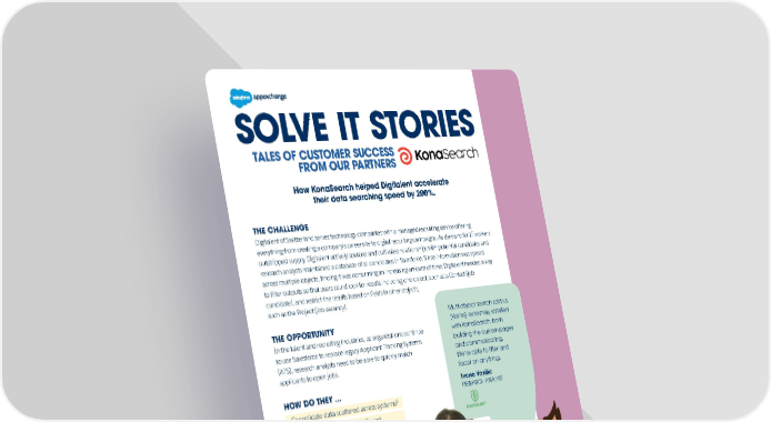 SOLVE IT STORIES TALES OF CUSTOMER SUCCESS FROM OUR PARTNERS How KonaSearch helped Digitalent accelerate its data searching speed by 200%. THE CHALLENGE Digitalent of Switzerland serves technology companies with a managed recruiting service offering everything from creating a company’s career site to digital recruiting campaigns. As demand for IT workers outstripped supply, Digitalent actively sourced and cultivated relationships with potential candidates and research analysts maintained a database of all candidates in Salesforce. Since information was spread across multiple objects, finding it was consuming an increasing amount of time. Digitalent needed a way to filter outputs so that users could look for results, including one object, such as a contact (job candidate), and restrict the results based on fields in other objects, such as the project (job vacancy). Multi-object search sold us. THE OPPORTUNITY [We’re] extremely satisfied In the talent and recruiting industries, as organizations continue with KonaSearch, both to use Salesforce to replace legacy Applicant Tracking Systems building the custom pages (ATS), research analysts need to be able to quickly match and communicating. applicants to open jobs. We’re able to filter and facet on anything. HOW DO THEY ... Ivana Vasilic RESEARCH ANALYST · Consolidate data scattered across systems? · Apply filters to the data in different ways based on a variety of criteria? · Run advanced multi-object searches? In the case of Digitalent, it needed a solution that could help it curate data to quickly source qualified candidates for open roles. It was able to do this with the support of KonaSearch.