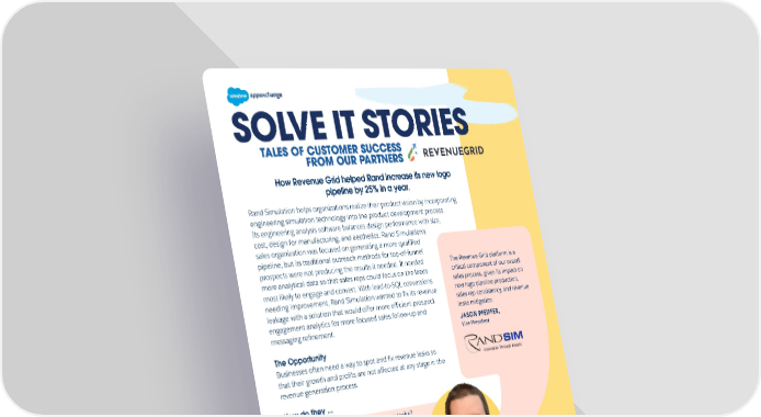 SOLVE IT STORIES SOLVE IT STORIES How Revenue Grid helped Rand increase its new logo pipeline by 25% in a year. Rand Simulation helps organizations realize their product vision by incorporating engineering simulation technology into the product development process. Its engineering analysis software balances design performance with size, cost, design for manufacturing, and aesthetics. Rand Simulation’s sales organization was focused on generating a more qualified pipeline, but its traditional outreach methods for top-of-funnel prospects were not producing the results it needed. It needed The Revenue Grid platform is a more analytical data so that sales reps could focus on the leads critical component of our overall most likely to engage and convert. With lead-to-SQL conversions sales process, given its impact on needing improvement, Rand Simulation wanted to fix its revenue new logo pipeline production, leakage with a solution that would offer more efficient prospect sales rep consistency, and revenue engagement analytics for more focused sales follow-up and leaks mitigation. messaging refinement. JASON PFEIFFER, Vice President The Opportunity Businesses often need a way to spot and fix revenue leaks so that their growth and profits are not affected at any stage in the revenue generation process. How do they ... • Analyze data with AI to spot revenue leaks? • Implement changes to the sales process? • Measure the effectiveness of changes with advanced reporting? In the case of Rand, it needed a solution that would auto-capture all relevant sales activities so that it could make necessary changes to avoid revenue loss. It was able to do this with the help of Revenue Grid.