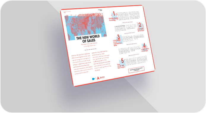 NEWS FROM OUR PARTNER THE EXCHANGE AVISO FALL 2020 It is important for different roles in Weekly Compass feature, each person 1 a revenue organization to know what gets their own version of an executive potential sales are in the pipeline and at briefing report. The dashboard visually what stage, along with recommended summarizes progress in key areas, Get Role-Based discounts and upsell opportunities. This anomalies on anchor deals, and specific ensures everyone is on the same page, actions that individuals can take to move Guidance regardless of their location. With Aviso’s deals forward to a successful close. A recent study conducted by Gartner collaboration around forecasting and found that by 2025, 50% of all B2B deal insights, alignment on ongoing organizations will use digital sales rooms. deals, manager-rep coaching, and help 2 Aviso’s Digital War Room provides on breaking communication silos. an opportunity for internal revenue Host Digital THE NEW WORLD War Rooms OF SALES One advantage to selling in person opinion on how their calls actually 3 is the ability to read body language and went. This helps remove the barrier that Five ways to empower sales reps Understand other in-person cues. With a tool like physical distance can sometimes create Virtual Aviso’s Sentiment Analysis feature, sellers in virtual selling. in the digital landscape. Conversations can use the power of AI to get a second Better With the shift away from traditional customers. Now, sales teams are In an office, team members can walk friendly and timely notifications. Its across the sales floor to give each other Nudge tool helps different roles take 4 offices to working from home, sales confined to purely virtual quick updates. In the digital age, Aviso rapid action when the underlying reality reps are facing new challenges and interactions, and they need support recommends implementing a system of deals changes. Course-correct that provides the equivalent of these with Nudges constraints that come with remote from “guided selling” technology. selling in a digital landscape. Gone AppExchange partner Aviso are the traditional coffee chats, describes five ways to enable sales Having a single source of truth and Relationship Maps helps team restaurant reservations, and sideline reps to achieve success via virtual provides forensics across actual rep members deep dive into individual 5 activities. It also bridges the gap between deals to see past activities, scheduled interactions that once functioned to tools and coaching in this evolving Take deal actions and revenue outcomes so meetings, most and least engaged with Action with that every person touching a deal knows contacts, a contact relationship map, cultivate relationships with digital age. Deal Insights the history. Aviso’s Activity Intelligence and deal interactions over time. LEARN MORE ABOUT AVISO FOR SALESFORCE ON APPEXCHANGE. 11