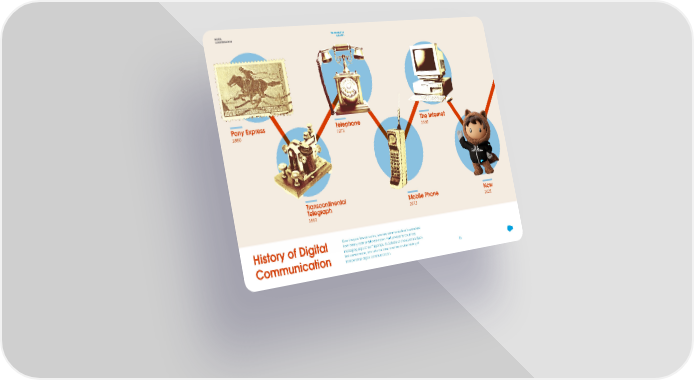 DIGITAL THE EXCHANGE COMMUNICATION FALL 2021 Pony Express Telephone The Internet 1860 1876 1980 Transcontinental Mobile Phone Now Telegraph 1861 1973 2021 Over the past few centuries, two-way communication has evolved from binary code and horse-drawn mail services to countless History of Digital messaging apps at our fingertips. As Salesforce moves into a Slack- first environment, let’s take the time to reflect on the history of 21 Communication interpersonal digital communication.
