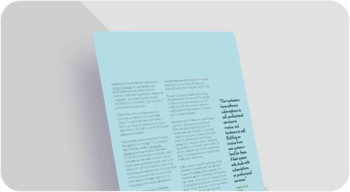 organizations automate their documents. across the business landscape, are no doubt Conga Contracts lets companies close daunting, there are plenty of reasons for deals faster with automated contract hope and a number of ways to turn the tide. creation, controlled negotiations, esignature integration, and reporting built directly To start, businesses should start tracking into Salesforce. Spendlove cited the lack of key performance indicators (KPIs) that get automation as a pain point. to the core of problems stemming from “Our customers inefficiency, which in turn can provide a “Oftentimes when someone sends a roadmap for improvement and a tangible have software customer a contract, they traditionally goal to measure success. subscriptions to create it in Word and then turn it into a PDF, or pull it out of Salesforce into some Stokes pointed to metrics he, and Vonage, sell, professional other format. This takes up a lot of time and recommend companies should track. services to additional overhead.” These include productivity gains from the efficient use of Salesforce; improved invoice, and Bryan Stokes is Senior Director of Product customer satisfaction scores across teams hardware to sell. Management at Vonage. The company’s AppExchange solution Vonage for based on their access to technology; average call time per customer measured Building an Salesforce reimagines how a business against time-to-close rates; and number of invoice from communications platform integrates voice calls handled per day. “All of these can boil and data into key sales, customer service, down to increased revenue and improved one system is and business productivity applications. For profitability,” Stokes said. hard for them Stokes, the ability to enhance productivity for employees and enhance how businesses In the context of JustOn customers, Fliege if that system communicate with their customers lies identified the month-end financial close only deals with at the heart of Vonage’s approach to as one KPI that has to be measured. The integrating with business applications. benefit of JustOn’s technology, in relation to subscriptions this metric, is that “you can close your books “Many businesses face challenges or professional at the beginning of the next month very fast, in tracking and controlling losses in within a day,” rather than one or two weeks services.” productivity. This stems from inefficient after the end of the month, he said. communication, the absence of integrated MARKO FLIEGE collaboration tools, and the inability to share JUSTON For Spendlove and Conga, the questions data across all customer and employee the company asks focus, naturally, on touchpoints.” generating contracts. Some questions cut to Data: Your Friend in the core metrics: Efficiency Business • How many people today are generating or using contracts? While the above inefficiency pain points, • How much time do they spend on new along with countless others experienced contracts or updating contracts? SPRING 2018 THE EXCHANGE 15