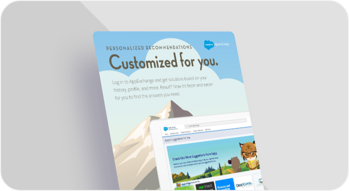 PERSONALIZED RECOMMENDATIONS Customized for you. Log in to AppExchange and get solutions based on your history, profile, and more. Result? Now it’s faster and easier for you to find the answers you need. log in to appexchange.com