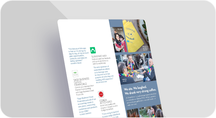 Big hug! “The beauty of this app Welcome to is that as I’m doing my our Ohana day to day, all my account breakfast plan opportunities, SURVEYMONKEY contacts, and data are being updated.” Capture customer feedback KENNETH FRANK and automate follow-up with SurveyMonkey. “Its wide spectrum of customizations allows us to leverage uses far beyond our initial SAGE BUSINESS purpose of collecting and CLOUD tracking NPS responses.” FINANCIALS PHILIP MARKHAM Making friends Control your business from finance to accounting with Sage Business Cloud Financials. We ate. We laughed. “Sage Business Cloud We drank very strong coffee. Financials puts all of our accounting needs in CONGA At Dreamforce ’17, AppExchange hosted a breakfast one place, connecting ACTIONGRID to celebrate our Ohana. MVPs, All Stars, partners, customers and products Boost data quality and and employees gathered to meet old friends — or in our CRM.” insights in Salesforce with make new ones. THOMAS MADSEN Conga ActionGrid. “I love using ActionGrid to mass assign/distribute users and update task status. It saves me hours SPRINGCM of time and I’m able to CONTRACT see the bigger picture and MANAGEMENT run the numbers.” WILL DHANASUNTHORN Automate documents and contracts with SpringCM Contract Management. Spice up Platefuls of “Using SpringCM has those eggs laughter helped tremendously Want more These are the with our contract review reviews? names L-R workflow, making it very Visit us at efficient and transparent.” appexchange.com TAMMY JONES Ohana High greetings five! SPRING 2018 THE EXCHANGE 21