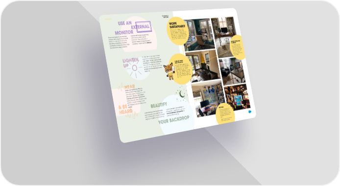 FEATURE STORY THE EXCHANGE USE AN SPRING 2020 EXTERNAL WORK SUSTAINABLY MONITOR When you work in an office, you have to depend on your employer to make It’s so much easier to view multiple monitor and making it your primary environmental decisions. Do they compost? windows with a big monitor. Amanda view results in a better overall Offer reusable silverware? When you work Nelson, Sr. Director of Community experience. “After testing lots of from home it’s all up to you, and it’s easy to make choices that are good for the planet. Marketing at Salesforce, has been external monitors through the years,” Here are a few ideas to get you started. working from home since 2011. She’s she shares, “I recommend the HP Envy.” discovered that using an external AVOID SINGLE-USE PLASTICS Use a refillable water bottle and washable utensils and It really helps to stay connected with serveware. You’re helping to co-workers when you can see each reduce the harmful chemicals LIGHTEN other clearly. Your light source should used to make plastics, lower the amount of waste in be facing you, rather than behind you. landfills, and protect animals’ UP Remember that light coming from UNPLUG YOUR natural habitats. windows changes throughout the day, ELECTRONICS so keep some movable light sources Any device that is plugged in draws nearby too. power and consumes energy, whether or not it is turned on. This wasted electricity emits carbon dioxide. Reduce your energy demand by using natural light, turning your screens off rather than using a screen saver, and unplugging your devices when they’re HEAR not in use. Always use headphones. They cut down on distracting background noise (kids playing video games in the next room), help you hear better in meetings, and prevent people from talking over each other. If you’re using wireless, consider keeping a spare set charging so you can swap out as needed. & BE BEAUTIFY HEARD Here’s where you can have some fun in a multiuse space like a bedroom or expressing your personality. Use the dining room no worries; we’ve got some space behind you to display favorite art, really fun Salesforce backgrounds for degrees, or trophies. If you’re working your next Zoom meeting. RECYCLE Follow local recycling guidelines. YOUR BACKDROP Separate recyclables correctly and make sure they’re clean and dry. You’re contributing to a more sustainable, effective recycling system. Together, we can make an impact from our own living rooms.