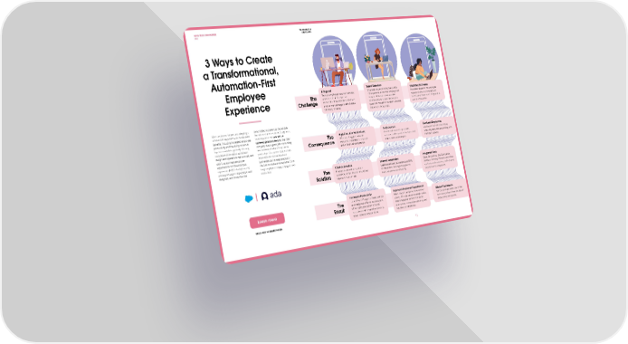 NEWS FROM OUR PARTNER THE EXCHANGE ada SPRING 2022 3 Ways to Create a Transformational, Automation-First Employee IT Support Talent Retention Remote employees become frustrated Employees expect a consumer-quality Disjointed Processes The when help from IT teams isn’t HR experience across their employment Processes related to the employee Experience Challenge immediate. IT teams spend too much lifecycle. HR teams spend valuable experience are unconnected, and time on manual support tasks instead time on manual support and routine techstack software is not integrated as of priority initiatives. questions instead of the talent priorities well as it should be. that enrich the business. More and more, brands are adopting a personalized experiences that enable remote-first approach with measurable them to do their best work at any time, from anywhere. Yet benefits, including increased employee only 67% of productivity and the ability to recruit surveyed global workers say that their High Cost, Low Productivity Inefficiencies Confused Employees top-tier candidates globally. The way company does a good job of providing The IT leaders struggle to allocate Leaders fail to efficiently capture, Employees have difficulty finding companies think about workplace an environment where they can be Consequence resources to valuable IT initiatives measure, and respond to the topics that what they need, and are working with design and operations has evolved, and productive. Our partner Ada outlines and critical business systems. matter most to employees. inefficient systems. with it, so too have employee three different scenarios where expectations for the employee businesses can leverage a solution experience (EX). In today’s world, like Ada to create an exceptional EX to employees expect thoughtful, well- keep employees happy, engaged, and designed, and consumer-like productive. Chat Automation Internal Automation Integrated Tools The Employees can self-serve, which Leaders are able to automate up to 60% Slack, ServiceNow, Jira, Confluence, decreases handle time for tickets from of interactions, helping employees do Zendesk, Workday, Workato, and others Solution days to minutes or less. their best work more efficiently. can help create seamless, multi-channel experiences for employees. Increased Productivity Improved Employee Experiences The Up to 50% of IT support headcount can Talent leaders can spend more time on Efficient Techstacks Learn more be re-assigned to higher value projects, priority HR initiatives and strategic topics, Brands can make better use of their Result while employees benefit from fast while employees benefit from better techstack and learn from the data of resolutions and increased productivity. experiences, increased productivity, and these connected systems. about Ada on AppExchange. Bonus: reduced cost per ticket. healthier job satisfaction. 11