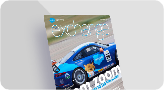We’re sponsoring a 175 mph Porsche. Hey Hey Guess whose image is on it? Appy PHOTOGRAPHS BY STEVEN VARGO Appy ! ! START YOUR ENGINES HEY, YOU’RE RIGHT. THAT INDEED IS APPY ON A 2018 911 GT3 CUP 991.2 SERIES Porsche. We’re using this race car to showcase Salesforce to fans, to other racers — and to start conversations. See you at the finish line, Appy! 6 THE EXCHANGE SUMMER 2018 SUMMER 2018