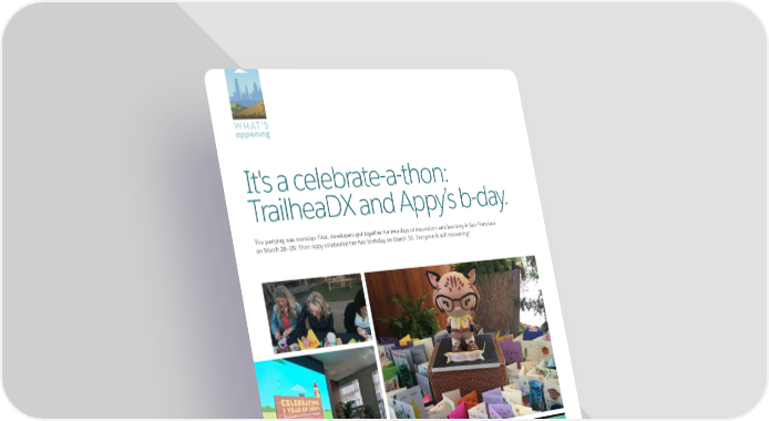 WHAT’S appening It's a celebrate-a-thon: TrailheaDX and Appy’s b-day. The partying was nonstop. First, developers got together for two days of inspiration and learning in San Francisco on March 28–29. Then Appy celebrated her first birthday on March 30. Everyone is still recovering! ns o ray C ALESFORCE S om c . y tBirthda y1s pp 14 THE EXCHANGE SUMMER 2018 SUMMER 2018