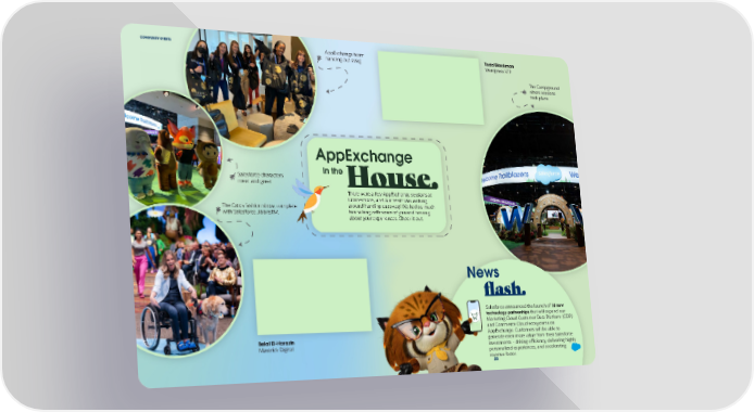 COMMUNITY EVENTS AppExchange team Todd Blackmon handing out swag. Wordpress VIP The Campground where sessions took place. AppExchange In the Salesforce characters meet and greet House. There were a few AppExchange sessions at Connections, and our team was walking The Crocs fashion show, complete around handing out swag! We had so much with Salesforce JibbitsTM. fun talking with some of you and hearing about your experiences. Check it out. News flash. Salesforce announced the launch of 18 new technology partnerships that will expand our Marketing Cloud Customer Data Platform (CDP) and Commerce Cloud ecosystems on Belal El-Harazin AppExchange. Customers will be able to Maverick Digital generate even more value from their Salesforce investments – driving efficiency, delivering highly personalized experiences, and accelerating revenue faster. 23