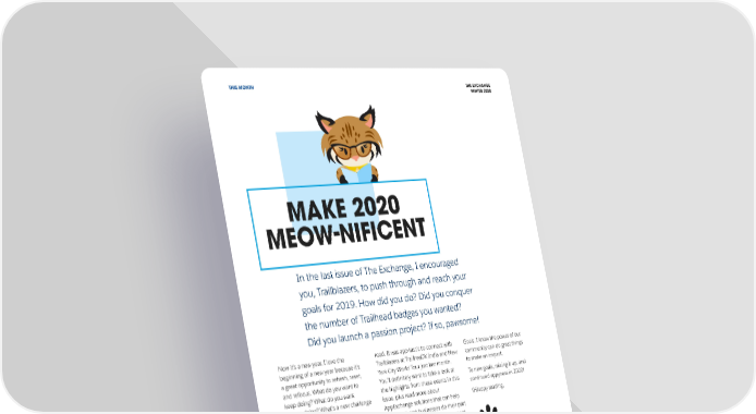 THIS MONTH THE EXCHANGE WINTER 2020 MAKE 2020 ALL THE MEOW-NIFICENT LATEST NEWS In the last issue of The Exchange, I encouraged you, Trailblazers, to push through and reach your DELIVERED goals for 2019. How did you do? Did you conquer the number of Trailhead badges you wanted? RIGHT TO Did you launch a passion project? If so, pawsome! Now it’s a new year. I love the road. It was app-tastic to connect with Goals. I know the power of our your INBOX. beginning of a new year because it’s Trailblazers at TrailheaDX India and New community can do great things a great opportunity to refresh, reset, York City World Tour just last month. to make an impact. and refocus. What do you want to You’ll definitely want to take a look at To new goals, mixing it up, and keep doing? What do you want the highlights from these events in this continued appyness in 2020! to stop doing? What’s a new challenge issue, plus read more about AppExchange solutions that can help (H)appy reading, you could take on? individuals and businesses do their part Speaking of things we’d like to keep in aiding the Sustainable Development doing, AppExchange has been on the IF YOU NEED A LITTLE INSPIRATION, HERE Appygail the Bobcat Neither snow nor rain nor heat nor gloom of night will stop AppExchange ARE MY RESOLUTIONS FOR 2020. EDITOR-IN-CHEIF from getting you all the latest news. Just sign up for our newsletter. Connect more customers than ever before with Get the latest e-books, articles, webinars, and more – everything you need AppExchange solutions to help their organizations to extend Salesforce to any department or industry. Sign up now. succeed. Join us at bit.ly/appexnews Spread the appyness throughout the ecosystem all across the globe. Practice self-care with regular pawdicures.