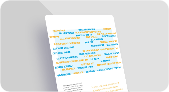 FEATURE STORY THE EXCHANGE WINTER 2020 #2020GOALS MAKE NEW FRIENDS WORKOUT TRY NEW THINGS DON’T FORGET YOUR VITAMINS BE HAPPY NEW YEAR, NEW ME BE A PART OF SOMETHING T CALL YOUR DAUGHTER TAKE A CLASS CALL YOUR SISTER HIS WATCH LESS TV YEAR G THINK POSITIVE, BE POSITIVE FEAR LESS TEXT LESS, TALK MORE O FOR ASK MORE QUESTIONS MEDITATE MORE CALL YOUR SON CALL YOUR FATHER DO THAT THING YOU ALWAYS WANTED TO DO START JOURNALING NS TALK TO YOUR FRIENDS CALL YOUR MOTHER CALL YOUR BROTHER OLUTIO COMPLIMENT SOMEONE EVERY DAY EAT BETTER START A HOBBY OT RES EXPRESS YOURSELF RIDE YOUR BIKE BE GENUINE N ASK FOR HELP VOLUNTEER MORE REACH OUT TO AN OLD FRIEND GO DANCING GIVE BACK SELF-CARE CREATE SOMETHING EVERY DAY hat is it about January 1 that birthdays, anniversaries, or life changes “I don’t make New Year’s Resolutions,” transforms people into optimists? all signify the passage of time and can said Chrissy Hennessy of AppExchange W Everywhere you look there are lists of kick-start motivation. Studies also show partner nCino. “Instead, I set goals. This resolutions and goals. Social media is that if you see immediate rewards might seem like a matter of semantics, “You see, what stands between us and filled with “New Year, New Me” mantras. from working toward a goal, it’s a good but there’s actually an important achieving even our most ambitious predictor you’ll see it through. Makes difference. Resolutions tend to be things We strive to be more: more healthy, sense. we want to change about ourselves more successful, more productive. because we think we’re lacking or dreams has far less to do with possessing That’s where the notion of “resolutions” wrong in some way. Goals, at least in my Research shows there is such a thing some magical skill or talent, and far more can crumble. Many resolutions tend universe, are things we want to add to as “fresh-start effect” — that a sense of to be vague or based on a long-term our lives, challenges or milestones that to do with how we approach problems new beginnings is a strong motivator. timeline. will enrich our experience of the world, And it’s not just in relation to a new paths to becoming better versions of the and make decisions to solve them.” year — personally meaningful events like people we already are.” STEPHEN DUNEIER, INVESTMENT MANAGER AND GUINNESS WORLD RECORD HOLDER 23