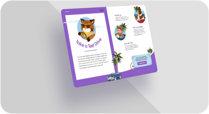 EASY DECISIONS THE EXCHANGE WINTER 2022 Buckle up. Look for the test drive icon on an app listing that interests you. Open the listing and get ready to roll. Start your engine. Click the test drive button to be transported into a read-only Salesforce org that includes the app, sample data, and, in some cases, a guided tour. T ake ive r a D t T s e Enjoy the ride. You’re free to explore the app at your own pace through a completely contactless experience, saving you You’ve browsed AppExchange and managed to find an app both time and resources. that checks all the right boxes. But is it really the right fit for your stakeholders and business challenge? Checking out a demo is great place to start, but one of the best ways to really see an app in action is to jump in the driver’s seat, fire Check out our AppExchange up the engine, and take the app for a test drive. collection page to find our best-in- class Test drives, all in one spot. Explore now 23