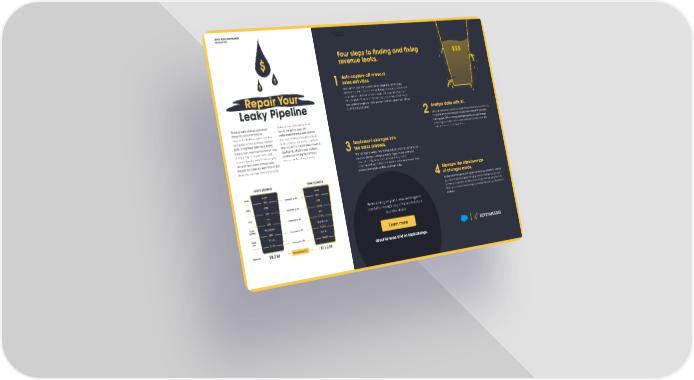 NEWS FROM OUR PARTNER THE EXCHANGE Revenue Grid WINTER 2023 Four steps to finding and fixing revenue leaks. Auto-capture all relevant 1 sales activities. Manual CRM data entry leads to errors, duplicates, and missing information, which leads to revenue leakage. An activity capture tool Repair Your auto-captures data from all touch points and keeps your Salesforce data complete. This means that even if your sales reps forget to add new contacts to opportunities, you won’t lose this data since it will be Leaky Pipeline automatically captured. Analyze data with AI. Revenue leaks often go unnoticed Below are two states of the same 2 When all sales data has been compiled into a shared source of truth, within the customer lifecycle. funnel: the before state with it is important to look through it to discover where and why leaks They are the hidden culprits that stop undiscovered revenue leaks and the may happen. With a revenue intelligence tool, you can leverage organizations from achieving revenue after state with leaks found and fixed. technology to analyze current and historical data and easily spot goals. Fixing these leaks has a strong In this example, improving conversion leaks and the reasons behind them. impact, from improved conversion rates rates by just 5% has increased revenue Implement changes into to reduced go-to-market costs and significantly, which means the leaky increased productivity. It’s not easy to pipeline was costing the company 3 the sales process. see when and where revenue leaks twice as much as it was earning. happen, but once you learn how to spot The next step is to eliminate revenue leaks by creating companywide them, you can stop them pretty easily. structural changes. Setting up custom triggers within your sales process, like a signal that alerts reps when they haven’t communicated with a decision maker in a while, ensures your team knows what needs to be done to prevent leaks. Leaky pipeline Fixed pipeline Measure the effectiveness Leads 30,000 30,000 4 of changes made. 19% Improved by 5% 20% Having real-time reports and signals can help you determine whether MQLs 5,700 6,000 your leak-fixing efforts paid off. Using revenue intelligence, you can 13% Improved by 5% 13.7% see how your pipeline and processes change after you plug the leaks. When your revenue is improving or meeting forecasts, you have fixed SQLs 741 840 Revenue Grid gives you full revenue intelligence the leaks. 12% Improved by 5% 17.6% capabilities, making it easy to find and fix leaks in Deals 89 | $22.2 M 109 | $27.3 M opened your sales process. 32% Improved by 5% 33.6% Deals $7.1 M $9.3 M won Learn more 115% Improved by 5% 125.8% Renewals $8.2 M Increased by 37% $11.2 M about Revenue Grid on AppExchange.