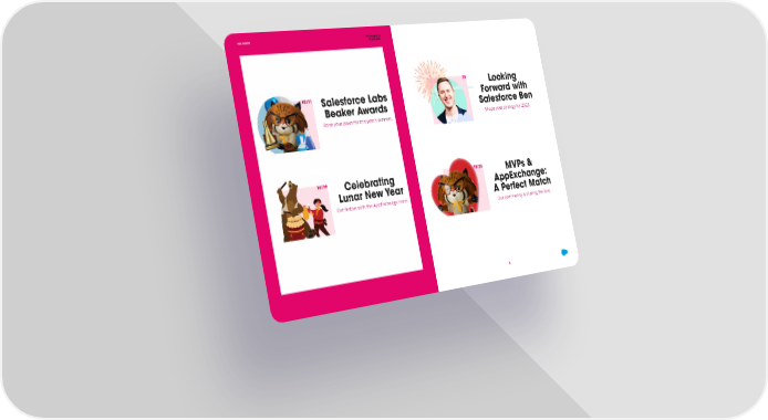 THIS MONTH THE EXCHANGE WINTER 2023 10/11 Salesforce Labs 18/23 MVPs & Beaker Awards AppExchange: Raise your paws for this year’s winners. A Perfect Match Our community is sharing the love. 12/15 Celebrating Lunar New Year 25 Looking Get festive with the AppExchange team. Forward with Salesforce Ben Shape your strategy for 2023.
