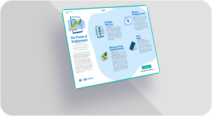 NEWS FROM OUR PARTNER THE EXCHANGE Highspot WINTER 2023 Measure Enablement ROI According to Highspot-commissioned research by GLG, fewer than one-third of firms that were surveyed report Do More that they can measure the impact of customer-facing employee training, and only half say they can measure With Less the impact of the content they produce. With the right tools such as Highspot that have advanced analytics, team leaders have visibility into rep performance to In order to drive revenue within the constraints of the guide reps and reinforce knowledge. You can also current environment, consider a revenue enablement measure content engagement and usage so that your platform that improves efficiency and streamlines sales and marketing teams know which content leads processes. The ideal enablement platform will unite to the best outcomes, driving more ROI from your and align your marketing, enablement, and sales strategic initiatives. The Power of functions to save valuable time that could be spent building customer relationships and driving strategic initiatives. With your company aligned and enabled Enablement around your most important strategic priorities, your business can drive more revenue with existing Next (or fewer) resources. During economic uncertainty, Steps a sales enablement platform is crucial to driving revenue. In today’s uncertain economic environment, companies are looking for ways to be more efficient. Manage & Find An enablement platform, integrated with your As we start the new calendar year, much of the world Salesforce CRM, can help your business get more is facing a challenging macroeconomy. Inflation is still Content Quickly out of your existing technology investments. We elevated in the United States (and other countries) recommend starting with a solid understanding of your while wages continue to increase and unemployment organization’s requirements, challenges, and strategic remains at historic lows. While more and more Developing and managing content in a single location objectives. That will position you well — regardless economists believe we are in a period of economic is a critical need for most organizations, but according of headwinds on the horizon — to evaluate the best to downturn, no one can predict how severe it will be. recent Highspot research, up to 70% of content enablement solution to drive productivity and revenue As a result, many sales, marketing, and enablement developed goes unused. Content governance strategy at your firm for years to come. teams are at maximum capacity and struggling to do is important, as it establishes rules around how content more without additional staff and resources. Firms that is published, maintained, and shared. By organizing are able to pivot quickly and take a proactive approach and managing content via a central platform that is to drive revenue will be in the best position to ride out integrated with Salesforce, such as Highspot, you can the economic storm. Our partner Highspot, integrated ensure reps always use the latest content that meets with Salesforce, is a sales enablement platform that brand guidelines and has up-to-date disclosures. This can improve the productivity of your existing client- type of tool with highly advanced search capabilities facing teams. Here’s how. also drives usage, since it helps users easily find and access the content they need from within their workflows. All of this can help you go to market faster and ensure messaging and execution is consistent across all your teams. Learn more about Highspot on AppExchange.