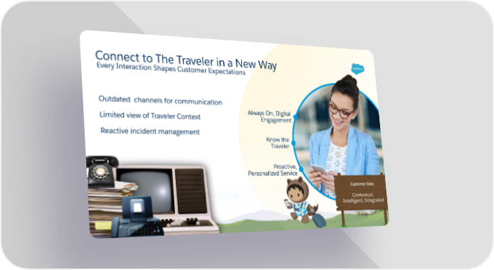 Connect to The Traveler in a New Way Every Interaction Shapes Customer Expectations Outdated channels for communication Always On, Digital Limited view of Traveler Context Engagement Reactive incident management Know the Traveler Proactive, Personalized Service Customer Data Contextual, Intelligent, Integrated