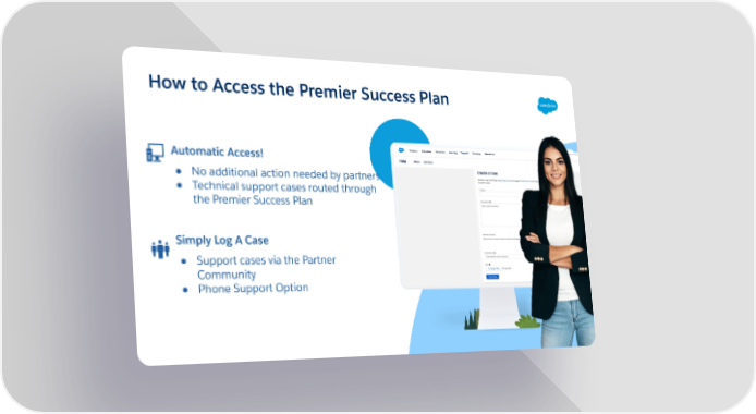 How to Access the Premier Success Plan Automatic Access! ● No additional action needed by partners ● Technical support cases routed through the Premier Success Plan Simply Log A Case ● Support cases via the Partner Community ● Phone Support Option