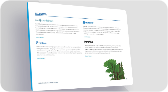 Sales ISVs Dun & Bradstreet is the global leader in commercial data. We provide native data Highspot is the sales enablement platform that Salesforce users trust. Highspot management capabilities to the Salesforce ecosystem which ensures that clients increases the performance of sales teams by bridging the gap between strategy and have confidence in the information held on their accounts, leads and contacts. Our consistent execution. Highspot’s patented AI uses Salesforce data to recommend solutions are easy to deploy, prevent duplication and keep key information updated. the best content, guidance, training, and engagement intelligence in every deal – We enable more accurate reporting, increased sales productivity and greater enabling every rep at the moment of action. user adoption. Learn More > Learn More > Recently recognised as a top 10 fastest growing technology company in Deloitte’s Fonteva enables membership organisations to modernise their technology platform Fast 50 Awards, Introhive helps organisations realise the full value of their to navigate today’s fast-changing environment, better serve members, and achieve relationships and under-utilised data. By ensuring adoption at all levels of Salesforce current and future goals. Fonteva is a full enterprise software solution used by over implementation, Introhive ensures users fully embrace CRM and keeps data clean 300 associations around the world to bring member communities together and drive and accurate, thus increasing ROI and pipeline growth. data-informed decision making. Learn More > Learn More > EMEA ISV Industry Booklet — Utilities 88